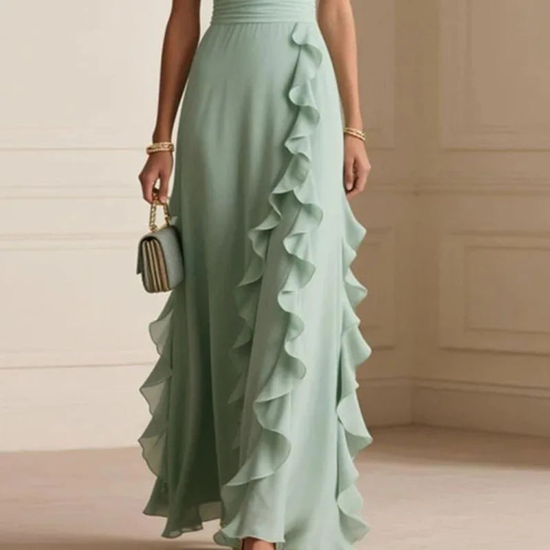 Elevate your wardrobe with this sophisticated mint green maxi dress, designed for effortless elegance. The tiered silhouette creates graceful movement and visual interest, while the floor-length cut offers a refined, polished look perfect for special occasions or elevated everyday wear. Crafted with a subtle stretch fabric, this dress provides comfortable all-day wear without compromising on style. The soft mint hue complements a variety of skin tones and pairs beautifully with minimal accessories, allowing the dress itself to be the statement piece.
