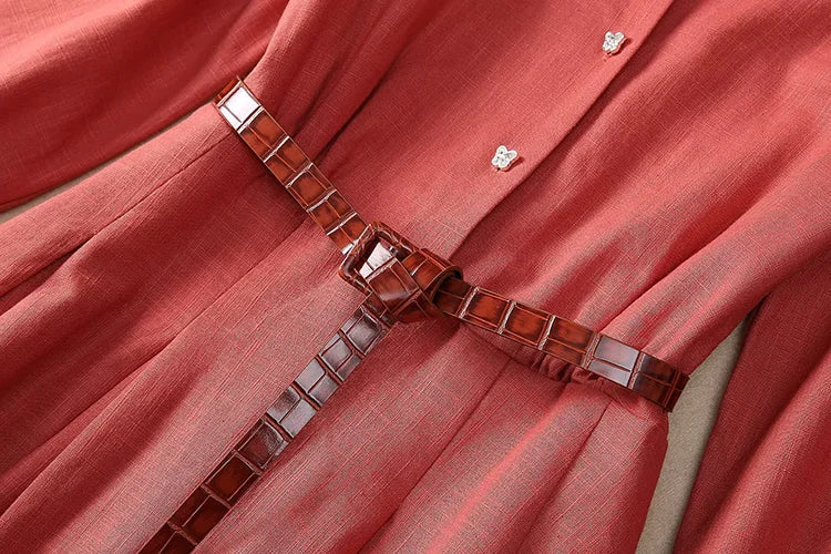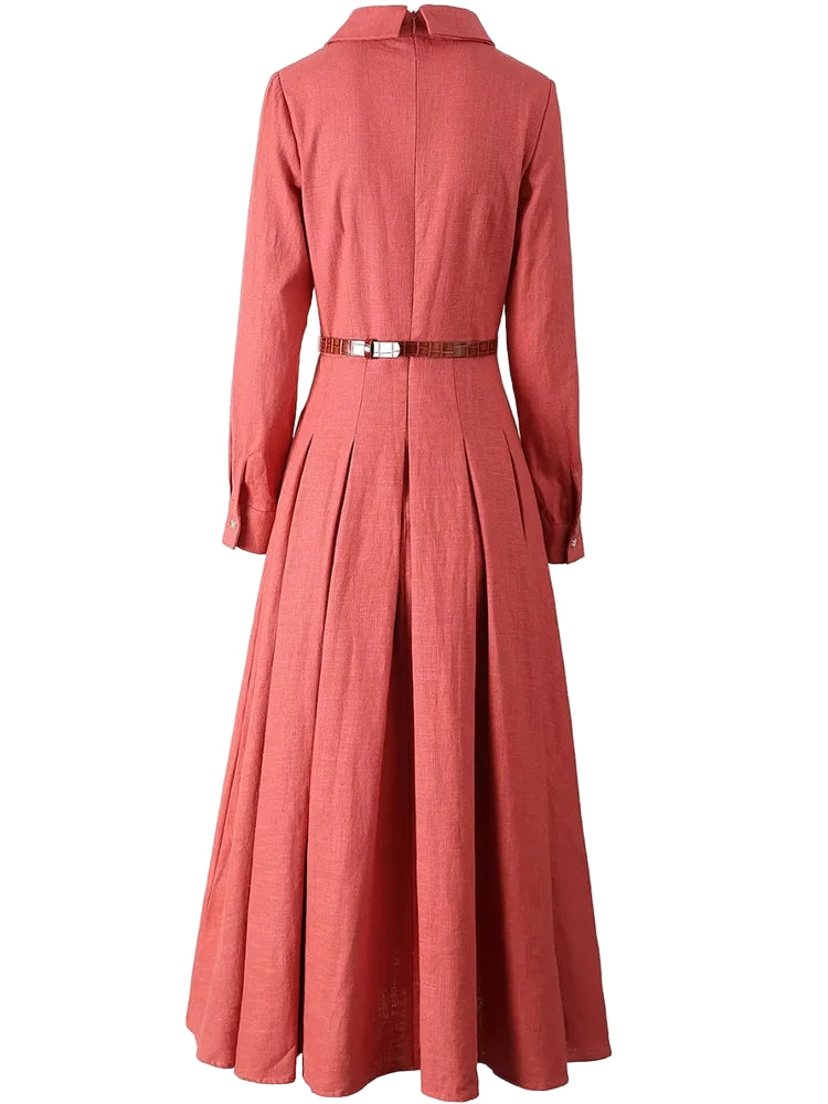 The Paula Winter Dress combines elegance with comfort, featuring a single-breasted design and delicate lace-up detail for a refined silhouette. Crafted from slightly stretchy hemp fabric, this ankle-length dress offers warmth and breathability, perfect for colder seasons. Its tailored fit enhances your shape while ensuring ease of movement, making it a sophisticated choice for winter occasions.
